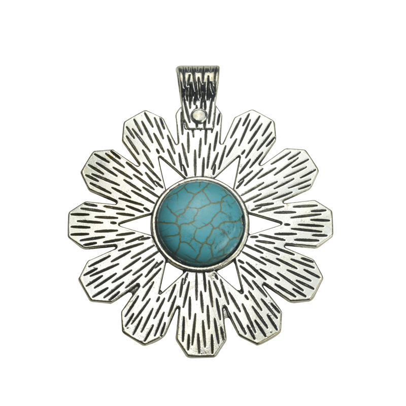 70×61.5mm Howlite Turquoise with Lead Free Pewter Flower Charm(A40821)