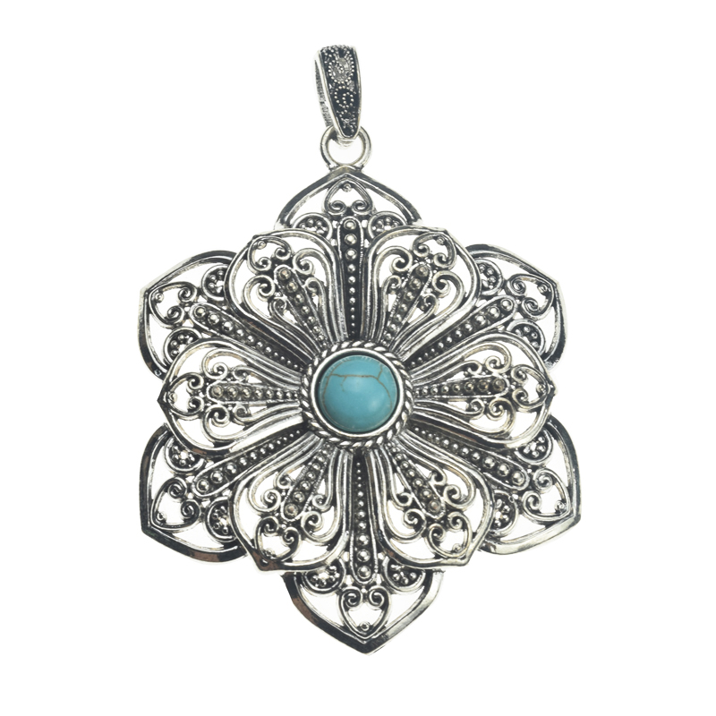72.5x65.5mm Howlite Turquoise with Lead Free Pewter Flower Charm(B39527) quantity