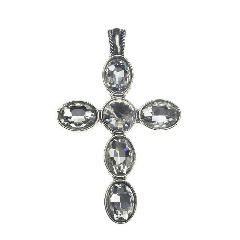 75x47mm Antique Silver with Clear Lead Free Pewter Cross Pendant(A12254) quantity