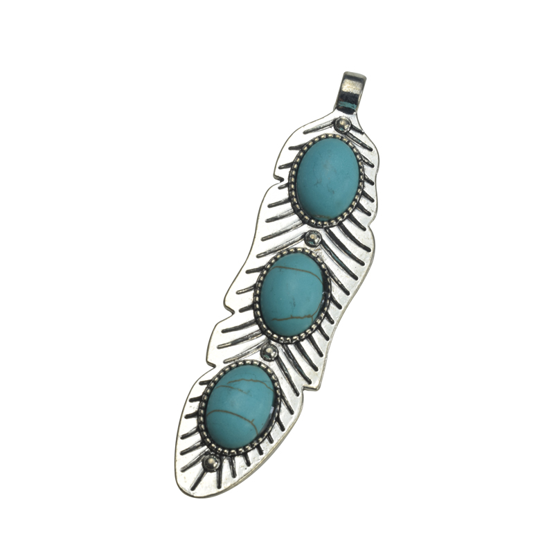 76x20mm Howlite Turquoise with Lead Free Pewter Feather Charm(B40934) quantity