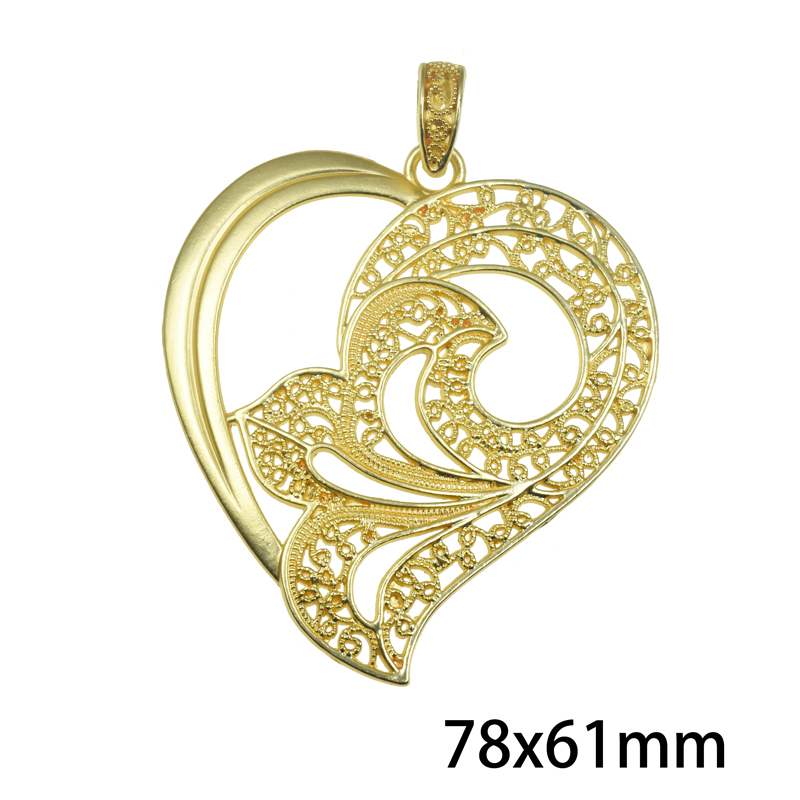 78x61mm Lead Free Pewter Matte Gold Heart Pendant (A41158) quantity