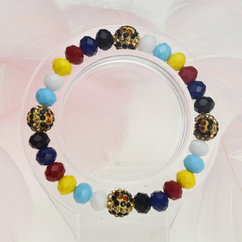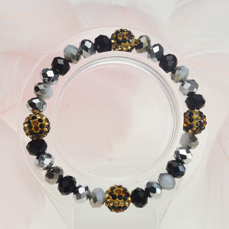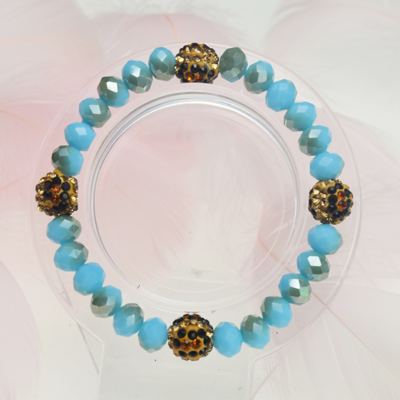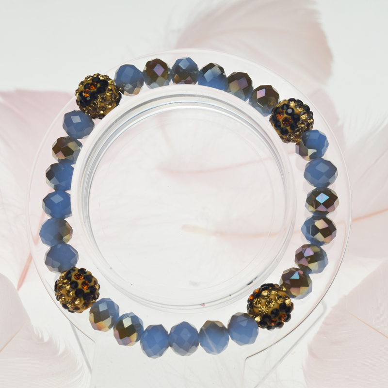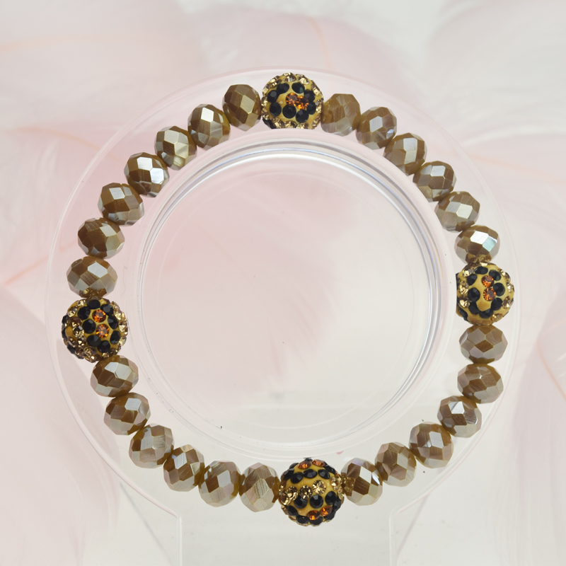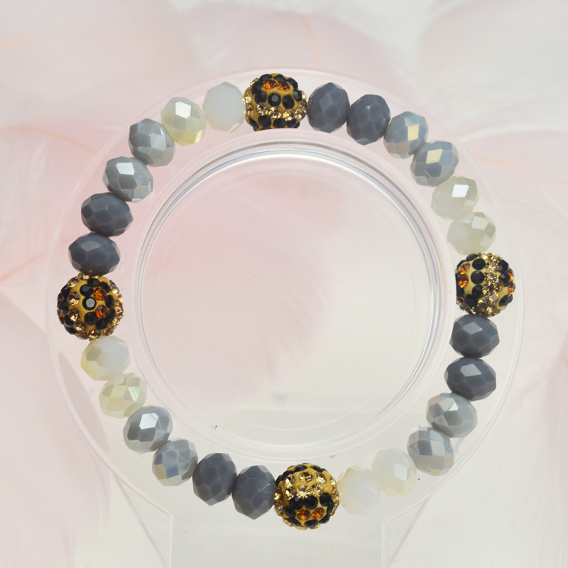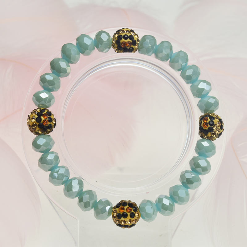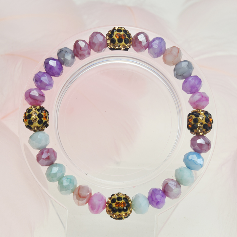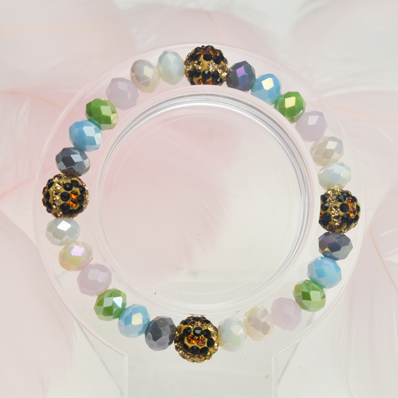 8mm Angelic Crystal Rondelle with Round Pave Rhinestone Beads Stretchy Bracelet, Shambala Bracelet (7.5 Inches)