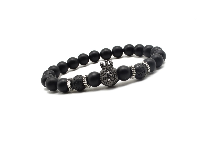 8mm Matte Onyx and Lava Rock Lion Head Gemstone Bracelet (7.5 Inches) quantity