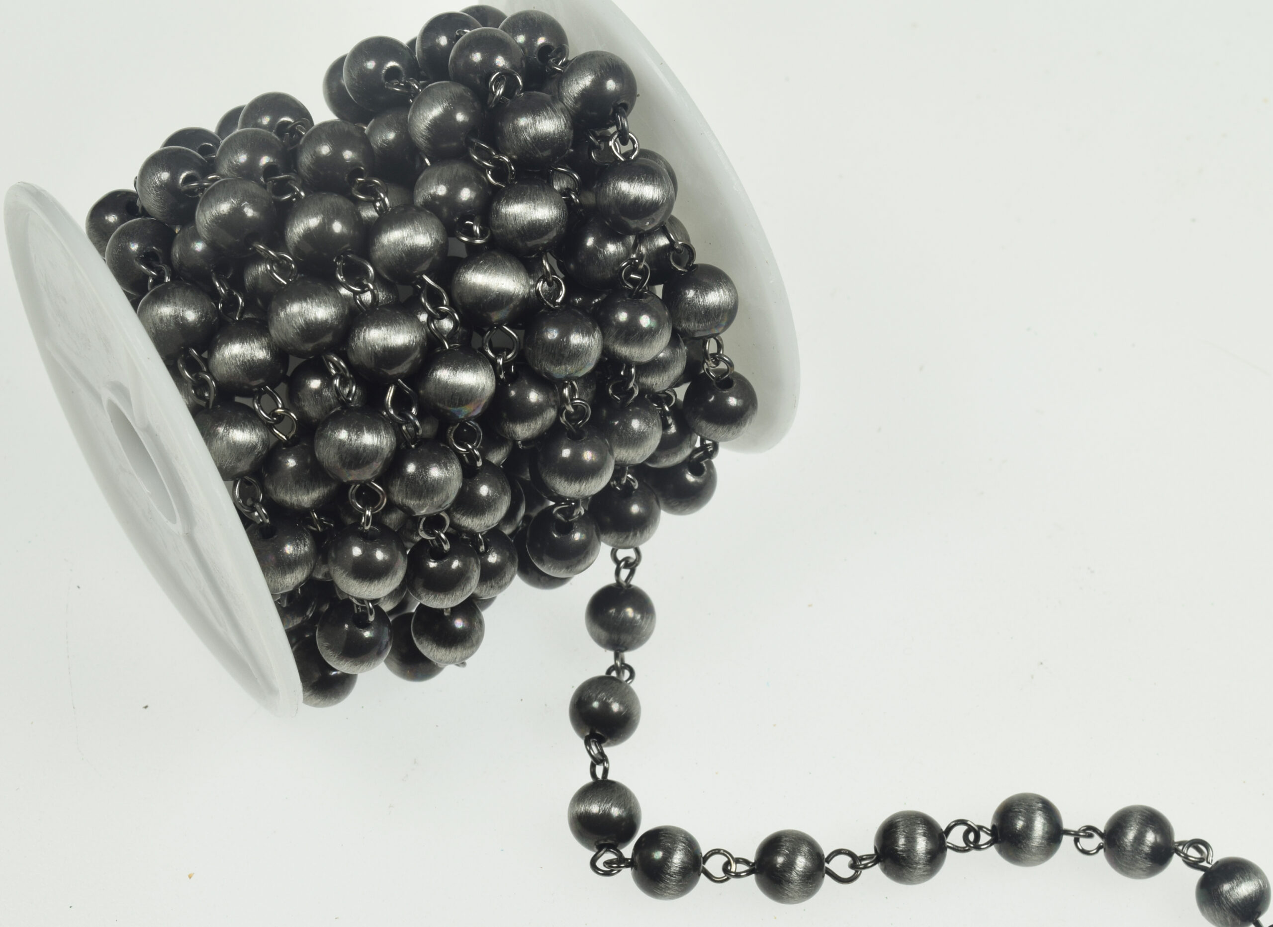8mm Round Faux Silver Indian Pearl Bead Chain in Gunmetal Wire (9.8 feet per Roll) quantity