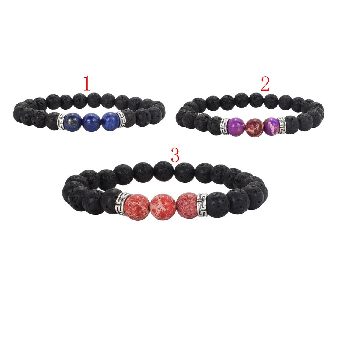 8mm Round Handmade Lava Rock With Sea Sediment Jasper Gemstone Stretchy Bracelets, Healing Bracelets, Oil Diffuser Bracelets (7.5 inches) quantity