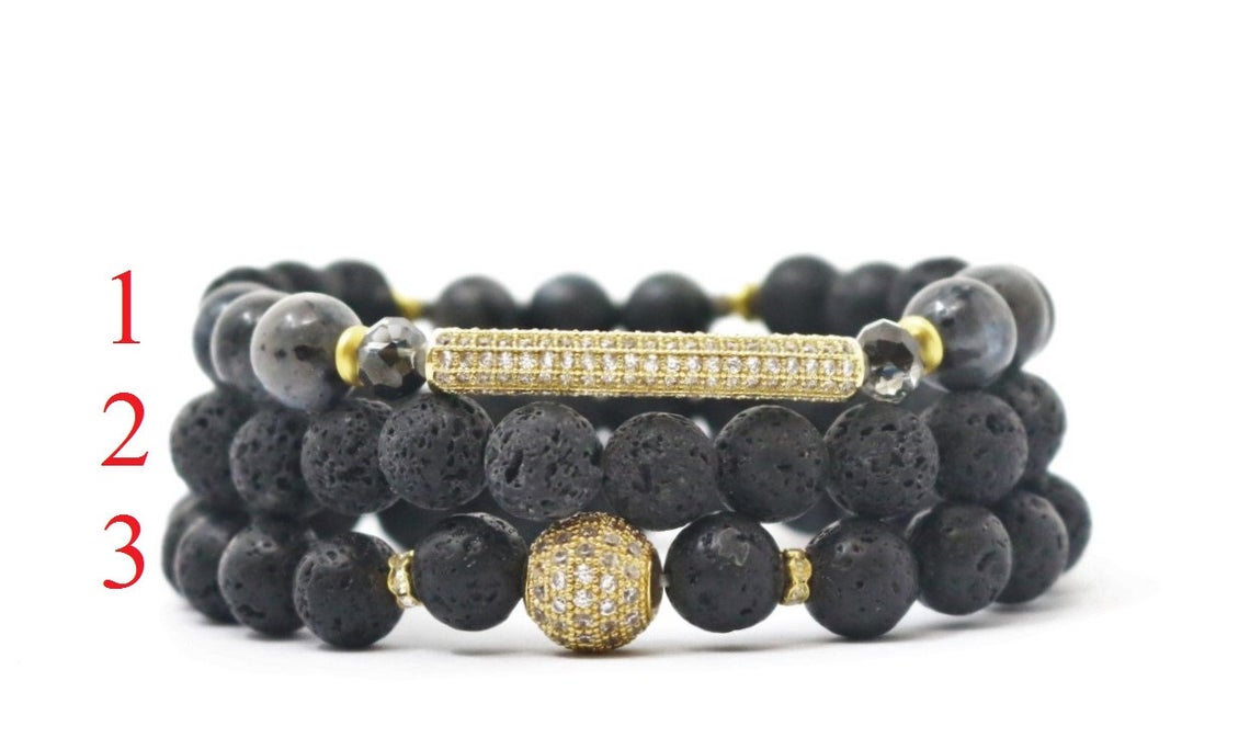 8mm Round Handmade Stretchy Lava Rock and Jasper CZ Bracelet, Oil Diffuser Bracelets, Healing Bracelets (Set of 3 or Individual)(7.5 inches) quantity