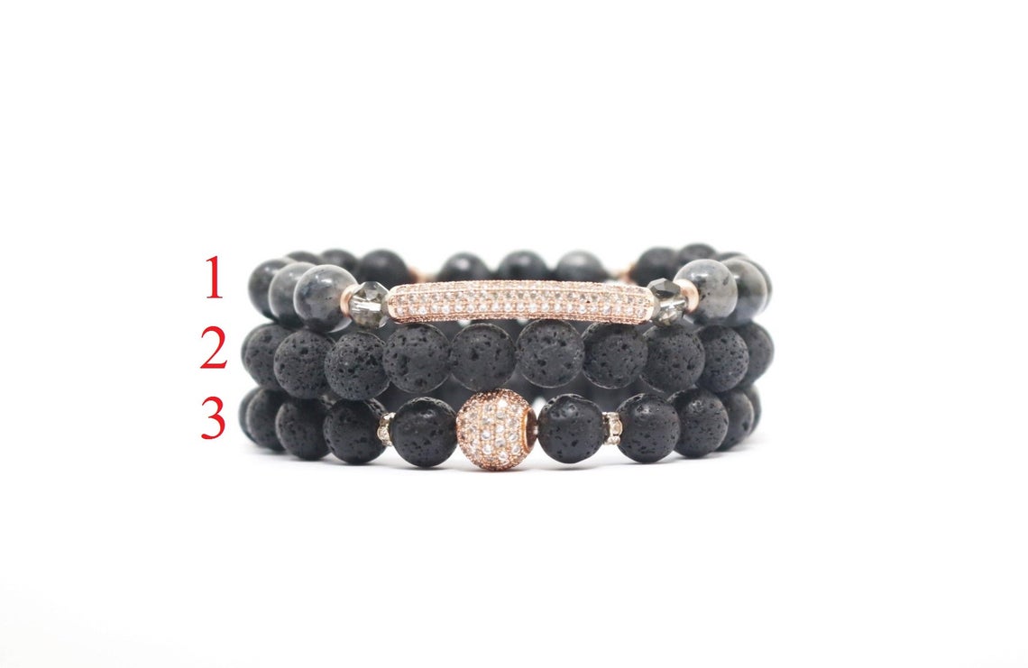 8mm Round Handmade Stretchy Lava Rock and Jasper CZ Bracelet, Oil Diffuser Bracelets, Healing Bracelets (Set of 3 or Individual)(7.5 inches) quantity