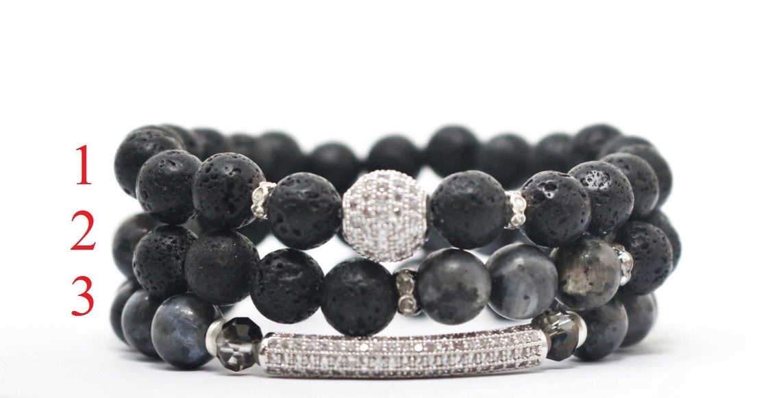 8mm Round Handmade Stretchy Lava Rock and Jasper CZ Bracelet, Oil Diffuser Bracelets, Healing Bracelets (Set of 3 or Individual)(7.5 inches)
