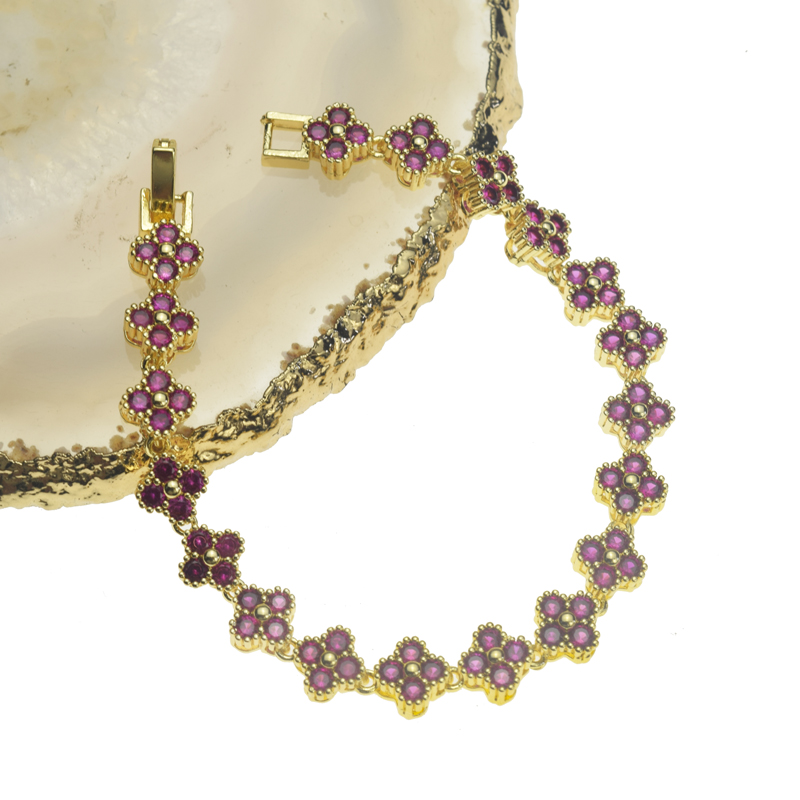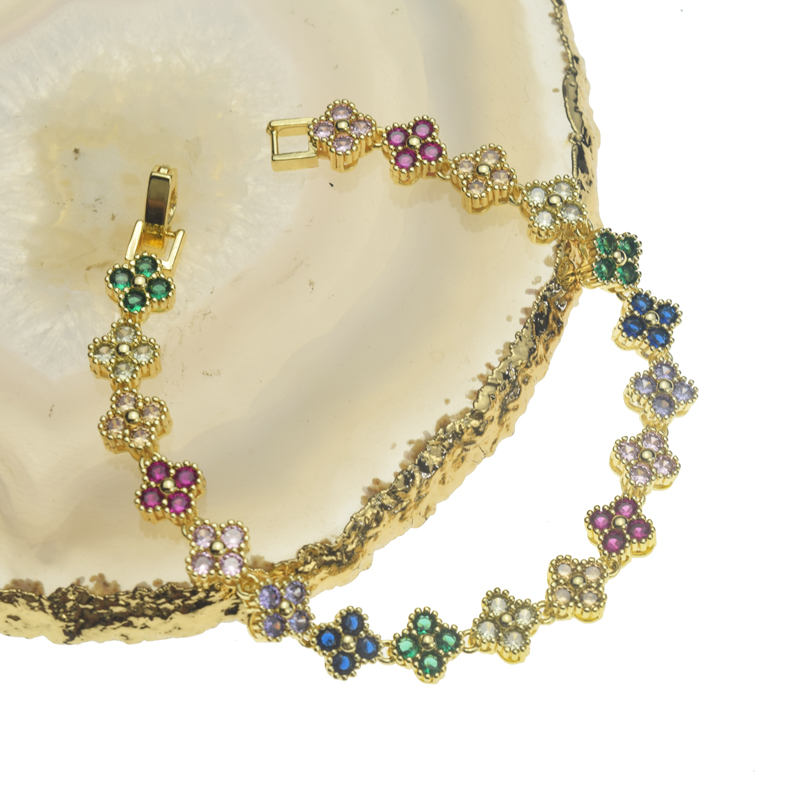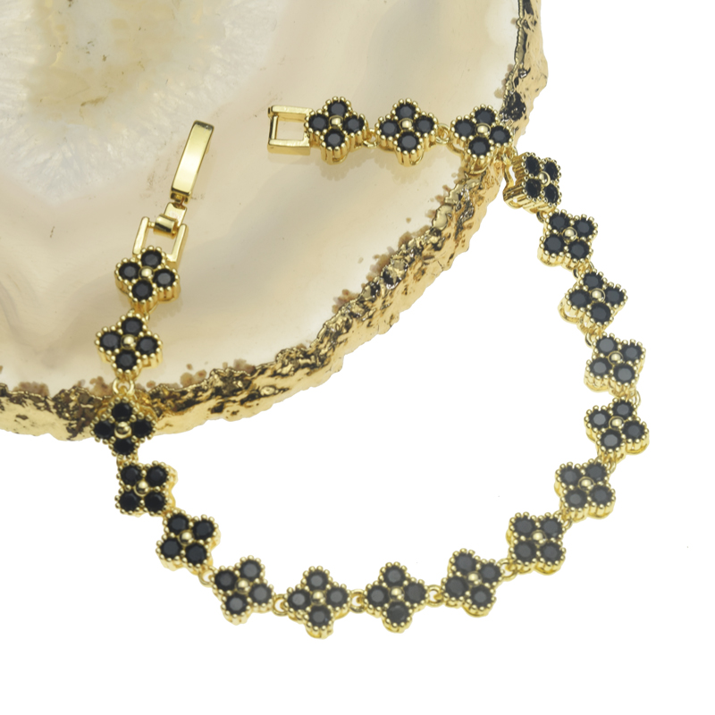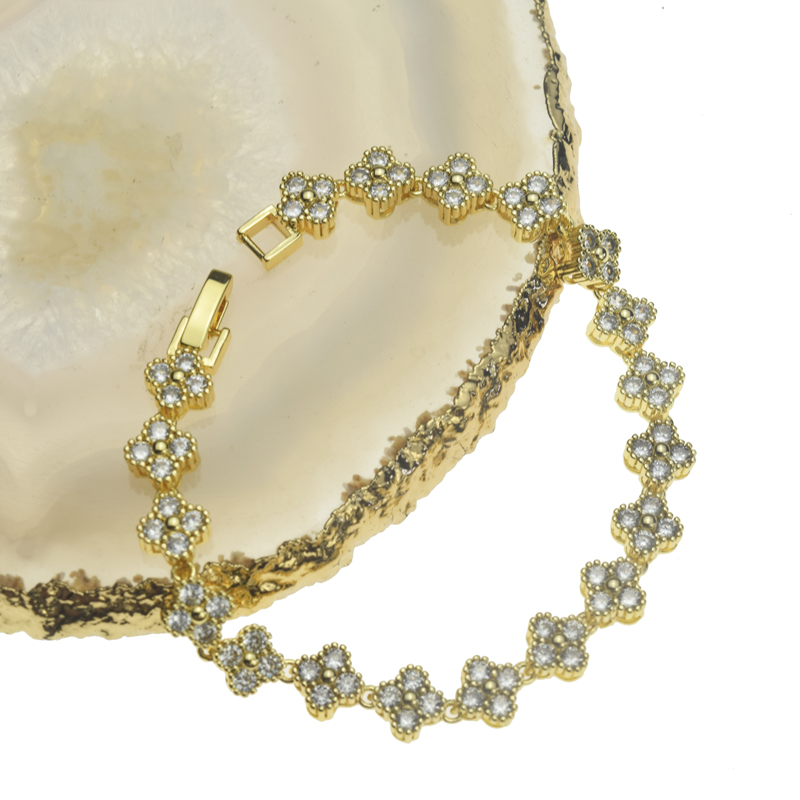 8mm Wrapped in Gold Four Leaf Clover Crystal Bracelet quantity