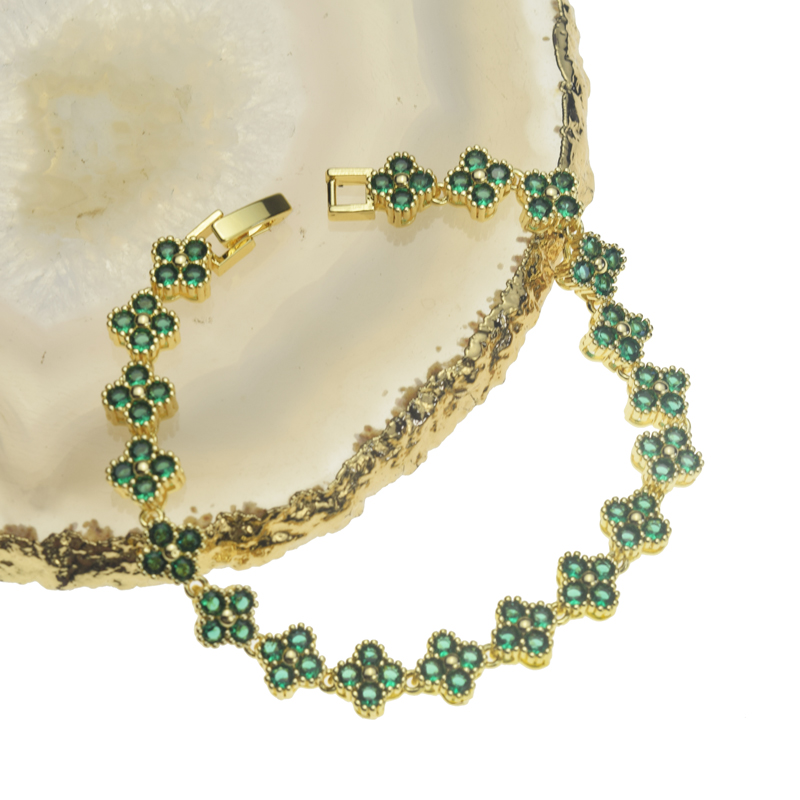 8mm Wrapped in Gold Four Leaf Clover Crystal Bracelet