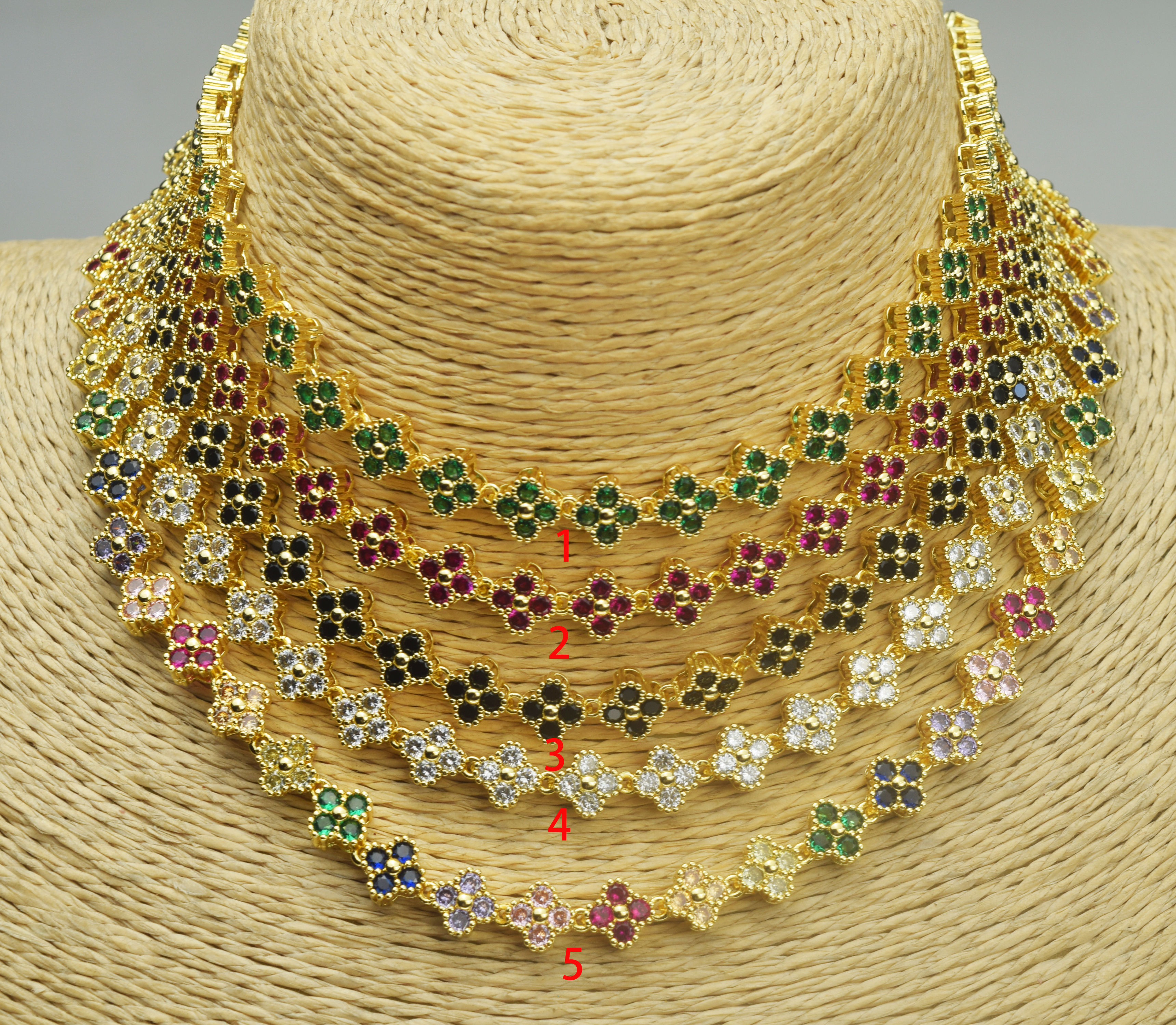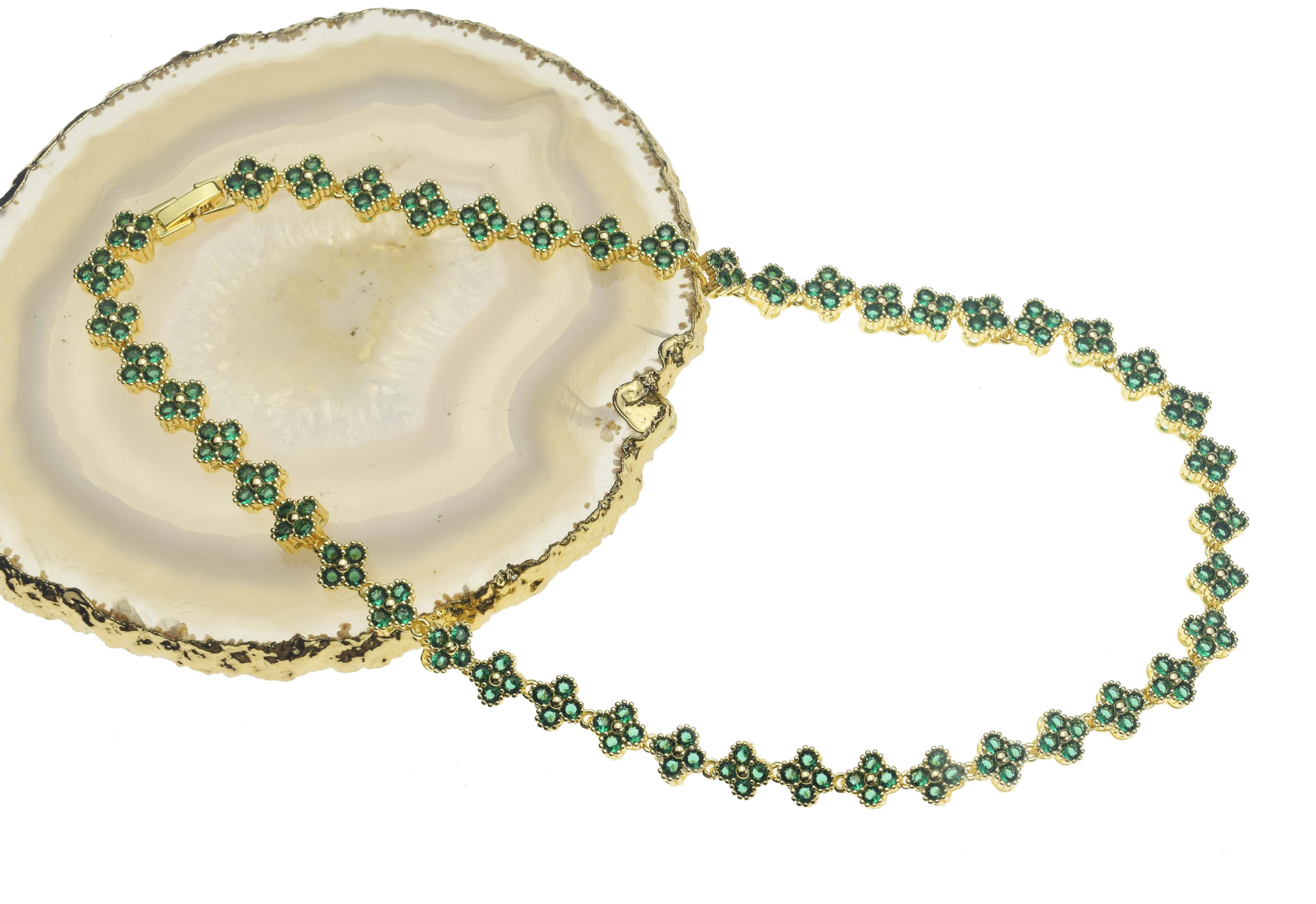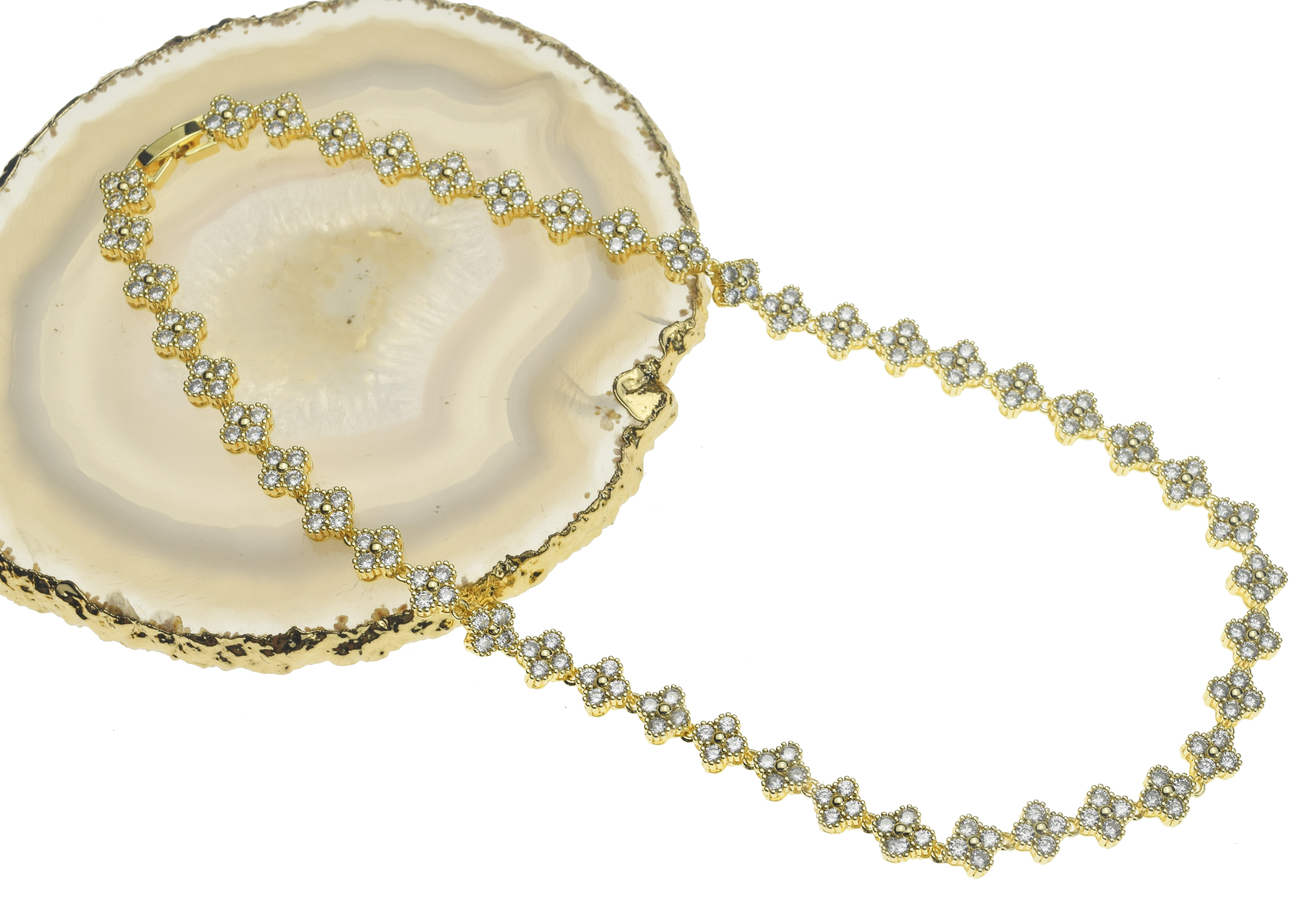 8mm Wrapped in Gold Four Leaf Clover Crystal Necklace quantity