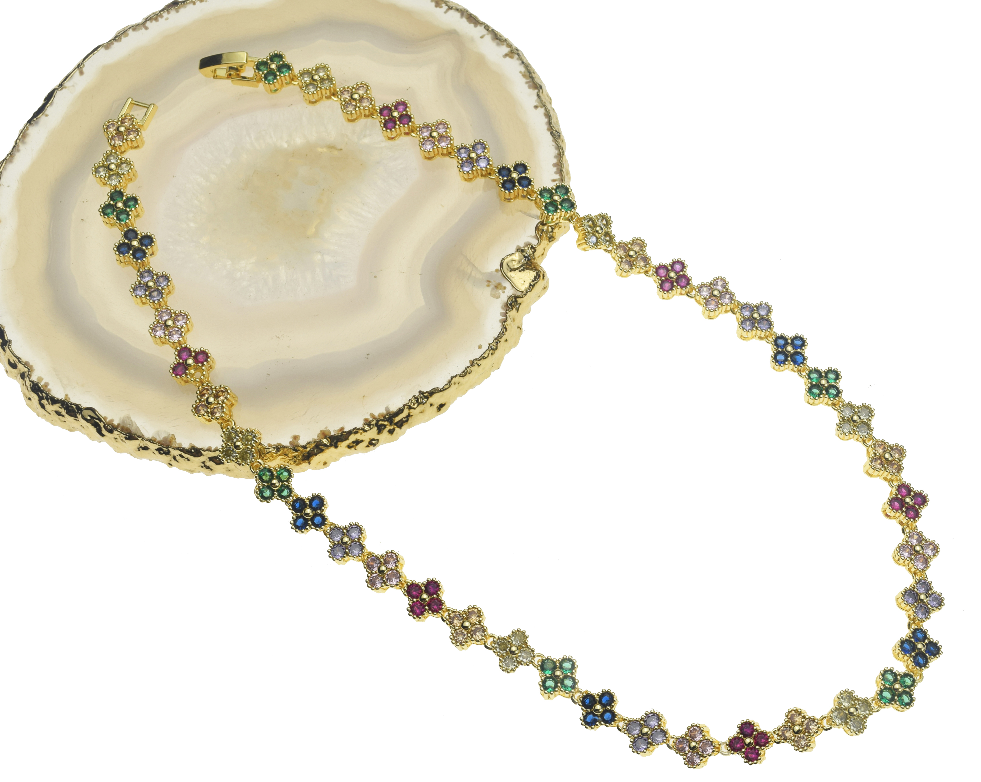 8mm Wrapped in Gold Four Leaf Clover Crystal Necklace