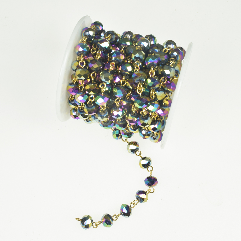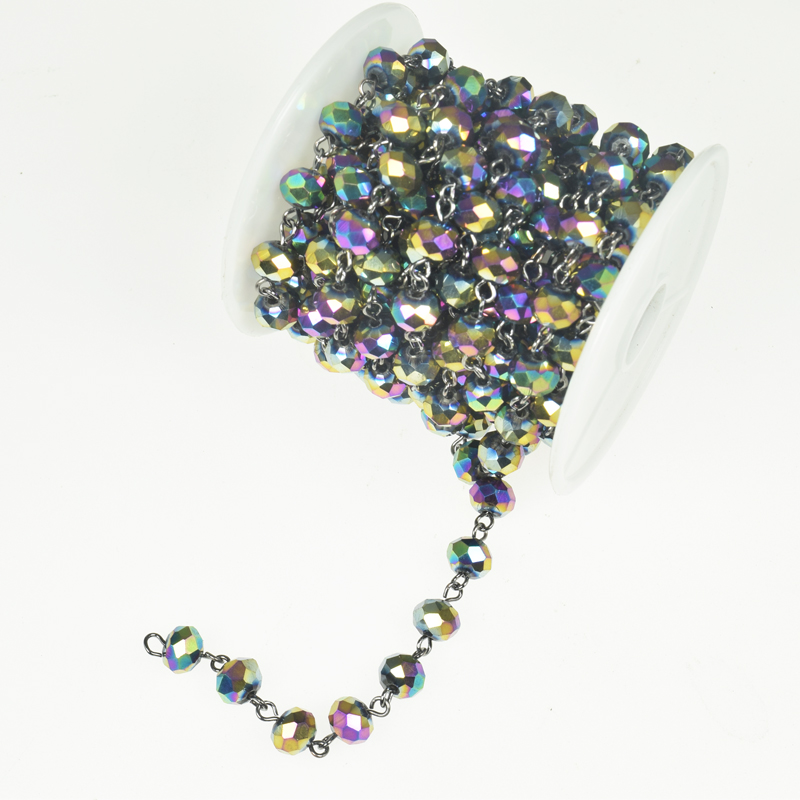 8x6mm Faceted Crystal volcano Crystal Rondelle Rosary Chain (9.8 Foot per Roll) quantity