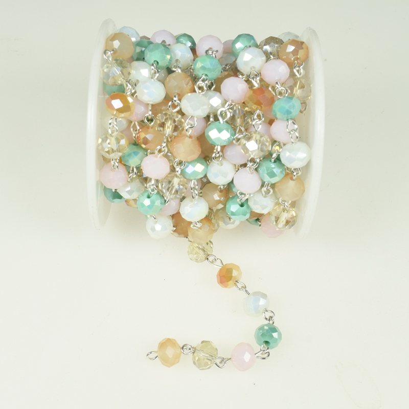 8x6mm Faceted Mix Crystal Rondelle Rosary Chain (9.8 Foot per Roll)