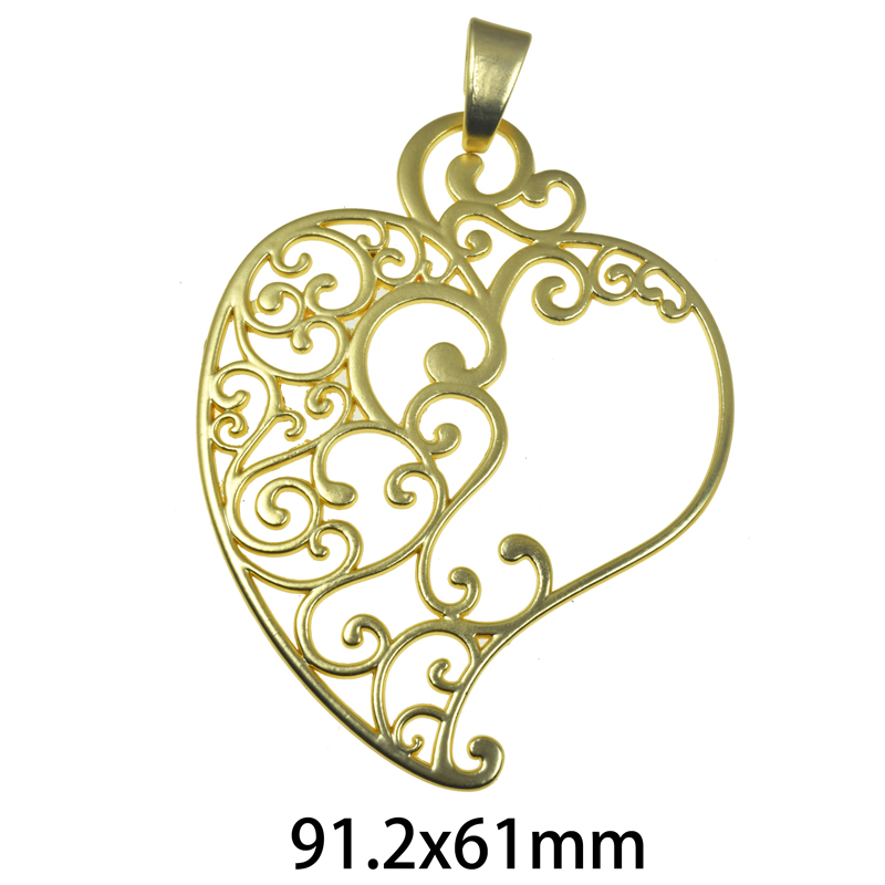 91.2x61mm Lead Free Pewter Matte Gold Heart Pendant (A40774) quantity