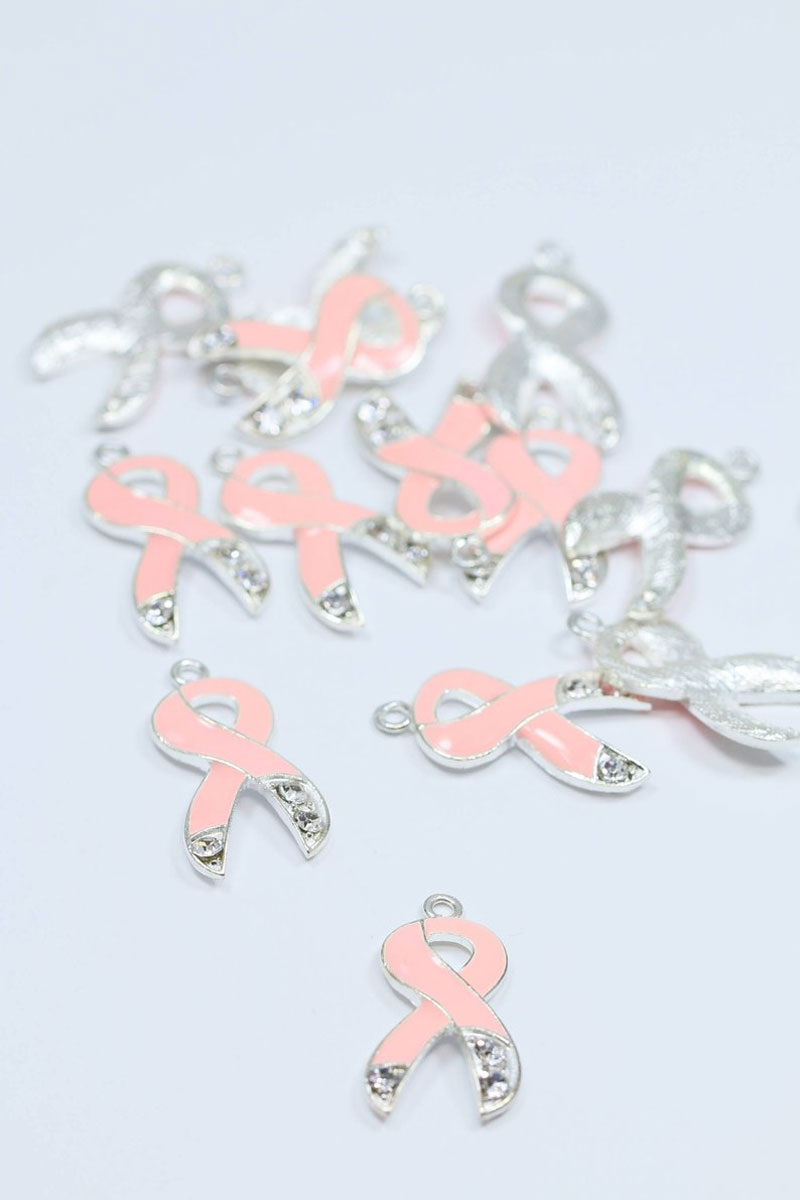 Bead Breast Cancer Awareness Ribbon Charm with Rhinestone (29mm) (10 pcs per Package) quantity