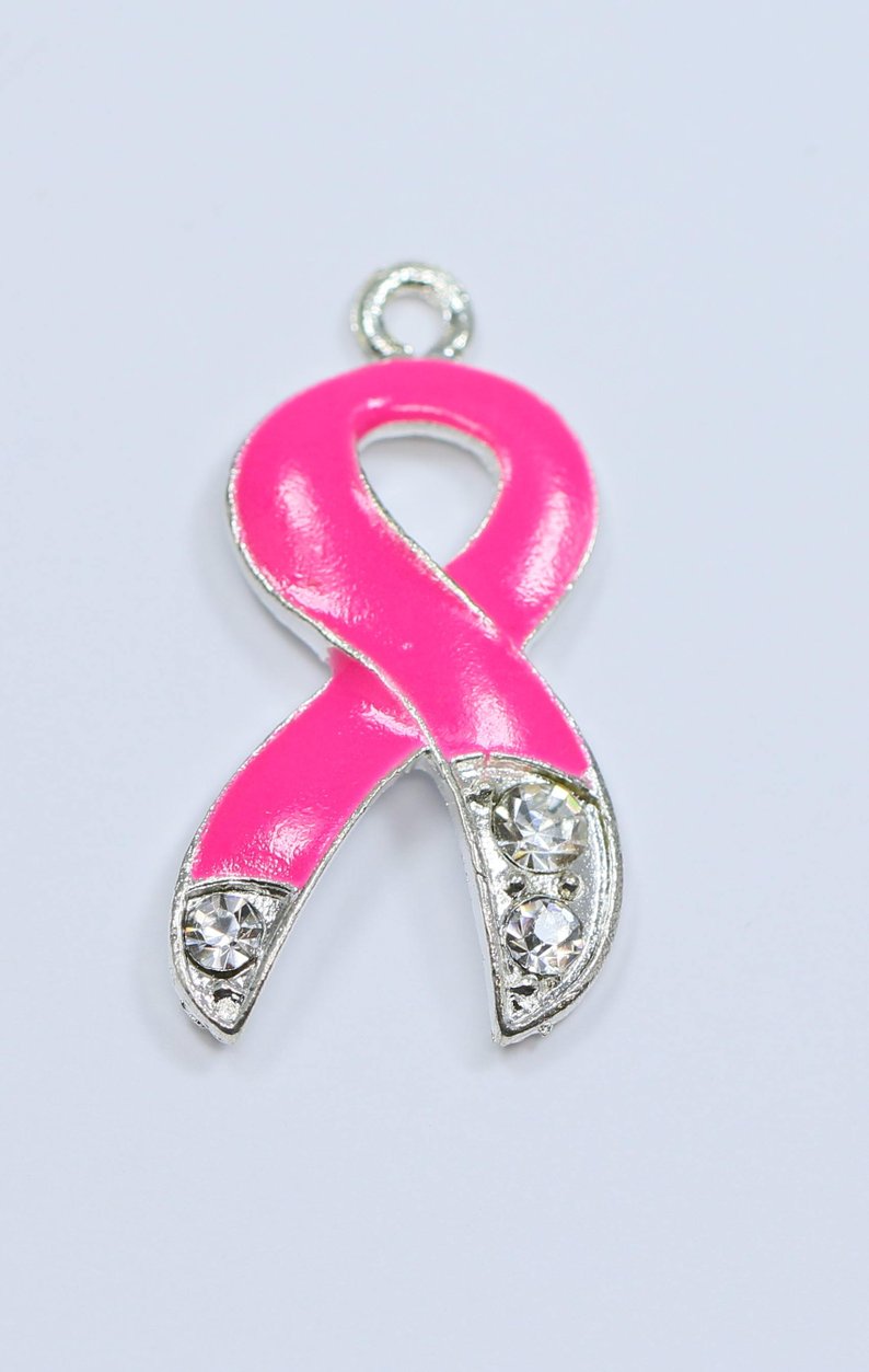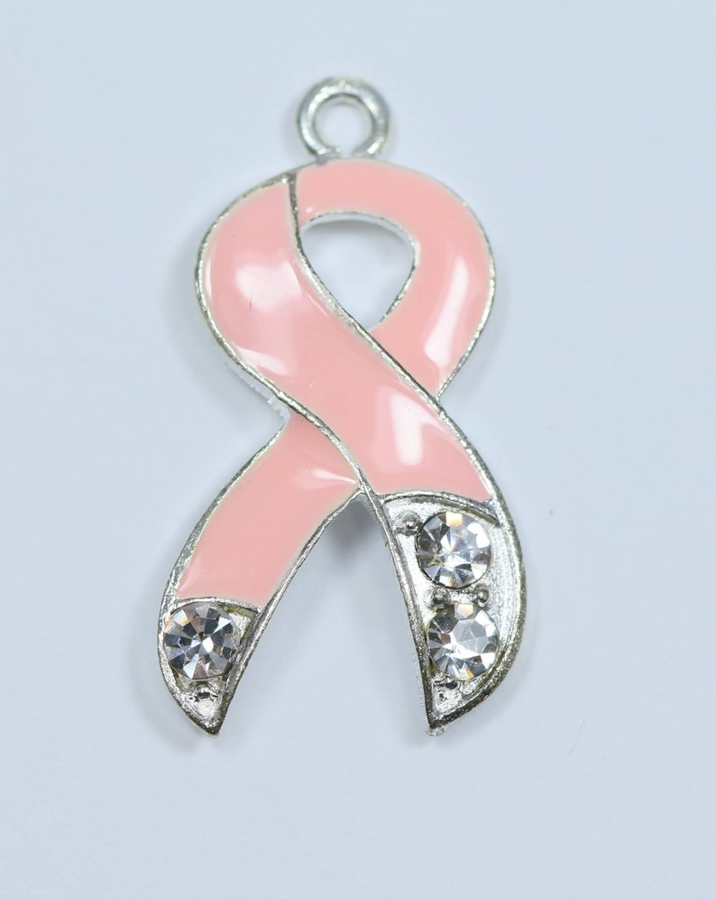 Bead Breast Cancer Awareness Ribbon Charm with Rhinestone (29mm) (10 pcs per Package)