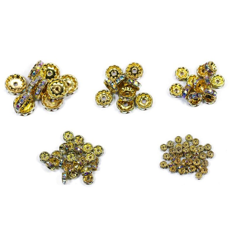 Bead Clear AB Gold Rhinestone Rondelle Spacer (4mm,6mm, 8mm, 10mm, 12mm) quantity