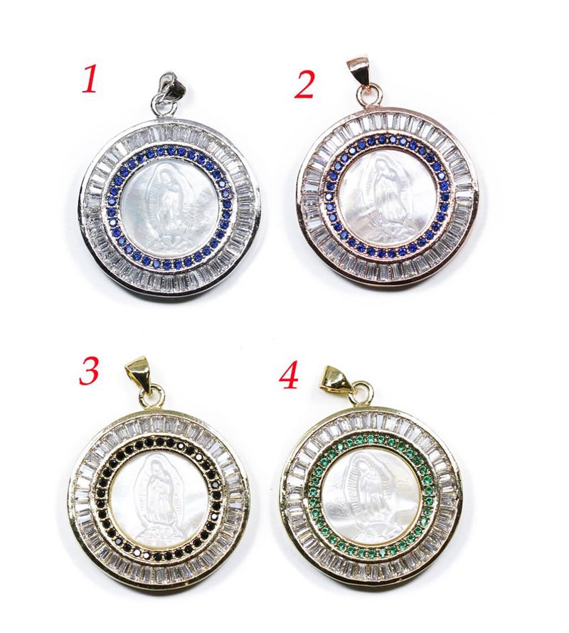 Bead Cubic Zirconia Shell Virgin of Guadalupe Coin Pendant (27mm) quantity