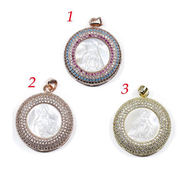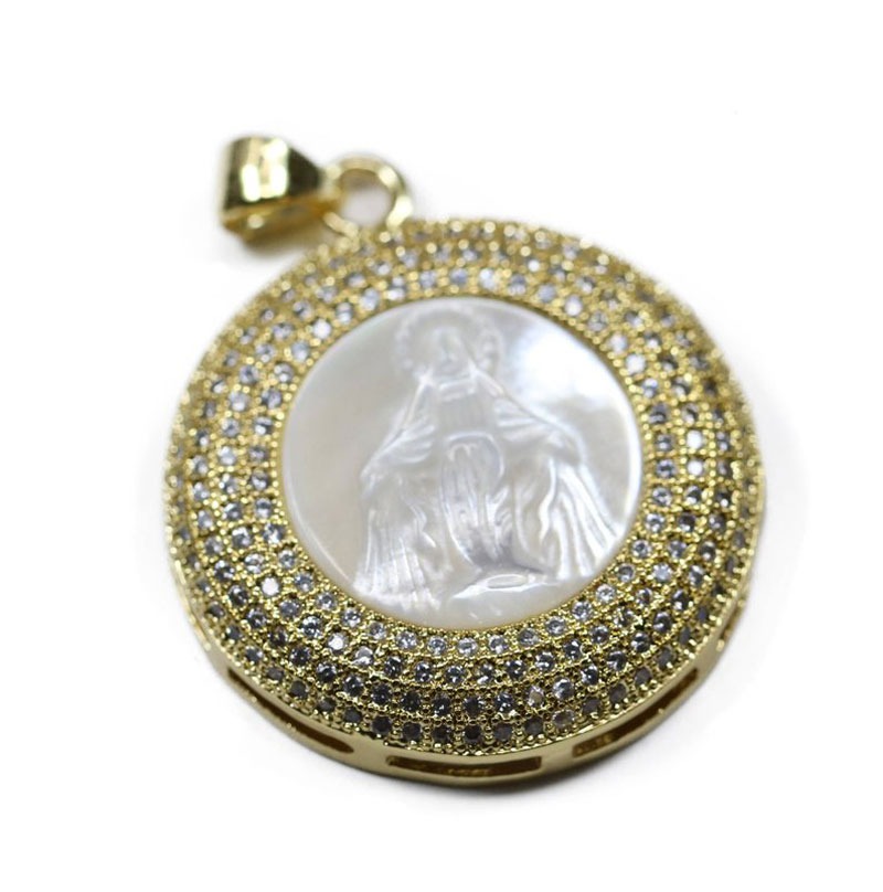 Bead Cubic Zirconia with Shell Virgin of Fatima Pendant (25mm) quantity