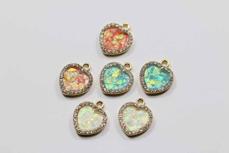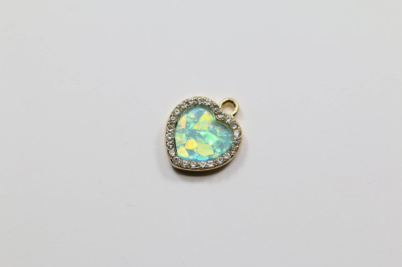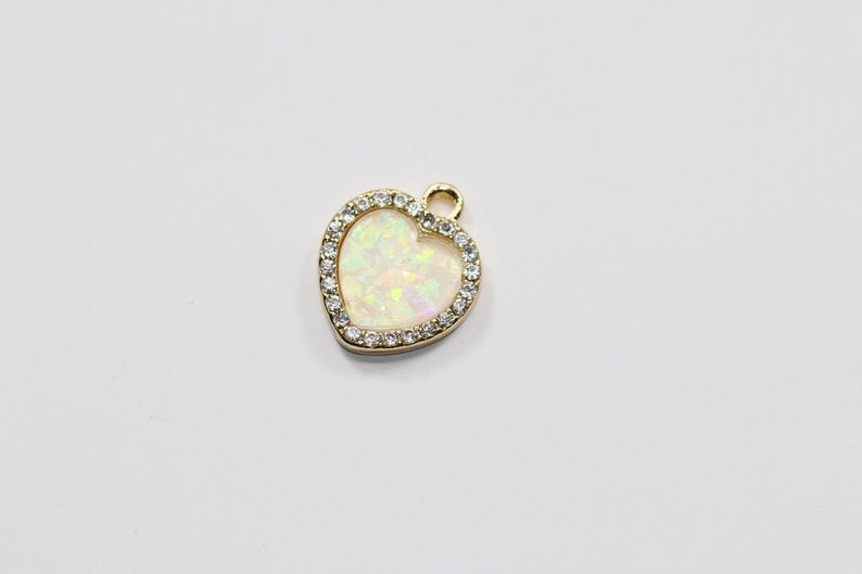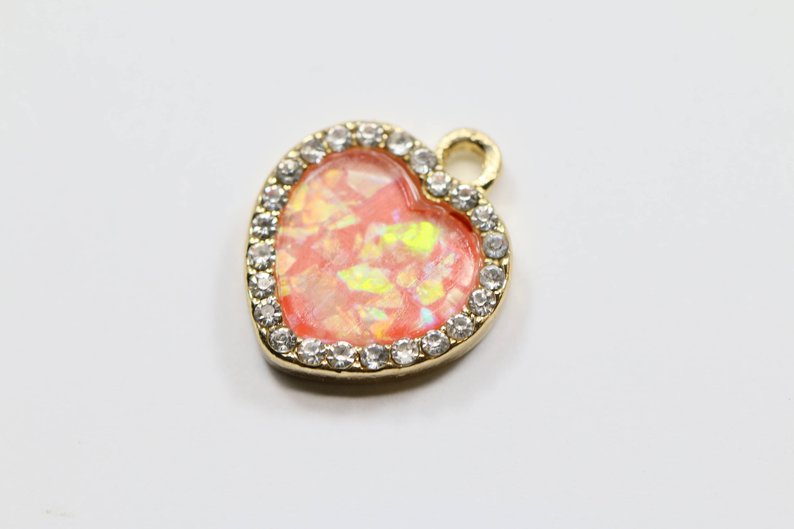 bead Gold Trim With Rhinestone Opalite Heart Charm / Pendant (16mm)