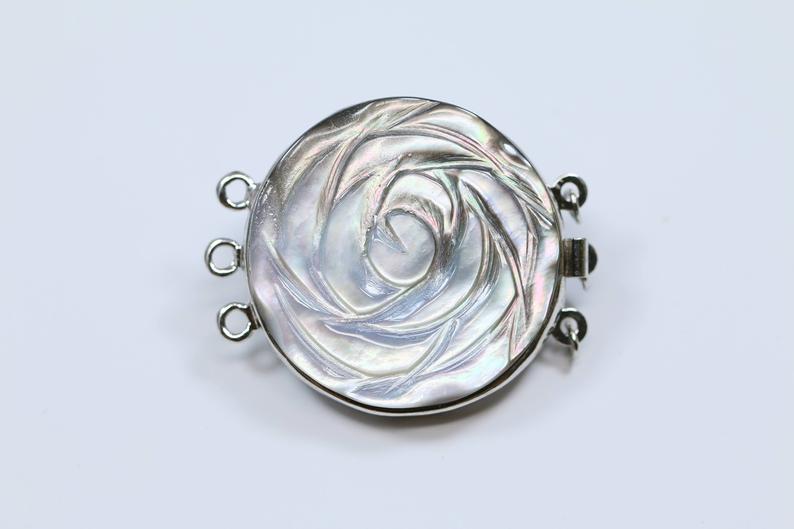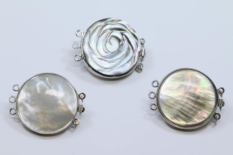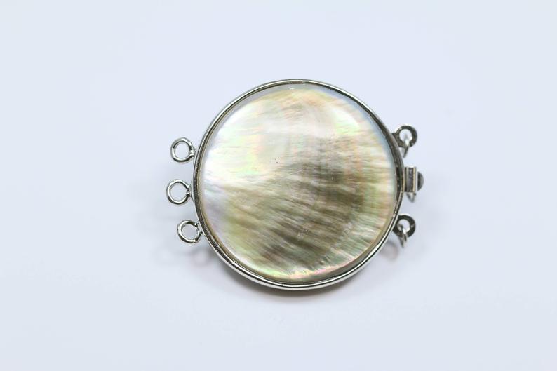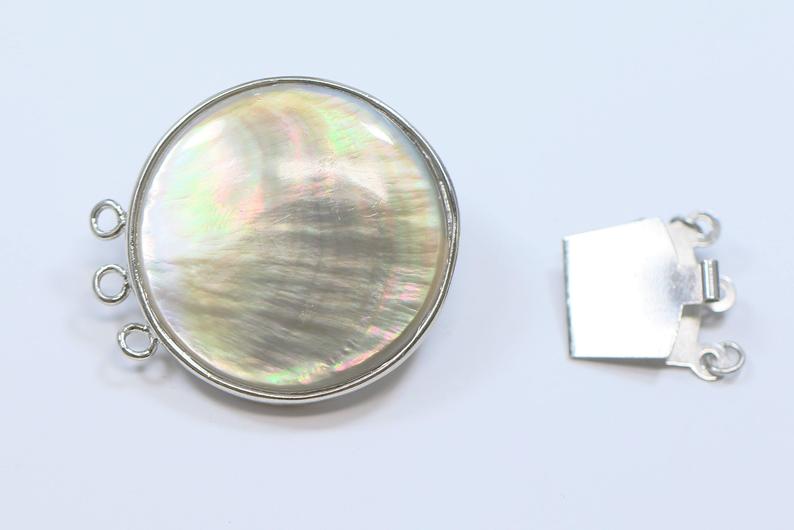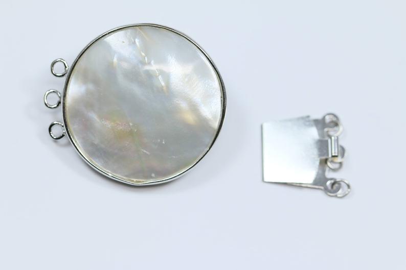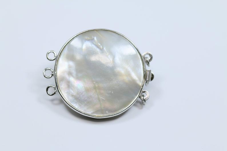 bead Handmade Mother of Pearl Multi Strand Silver Clasp Connector (30mm without rings, 40mm with rings)