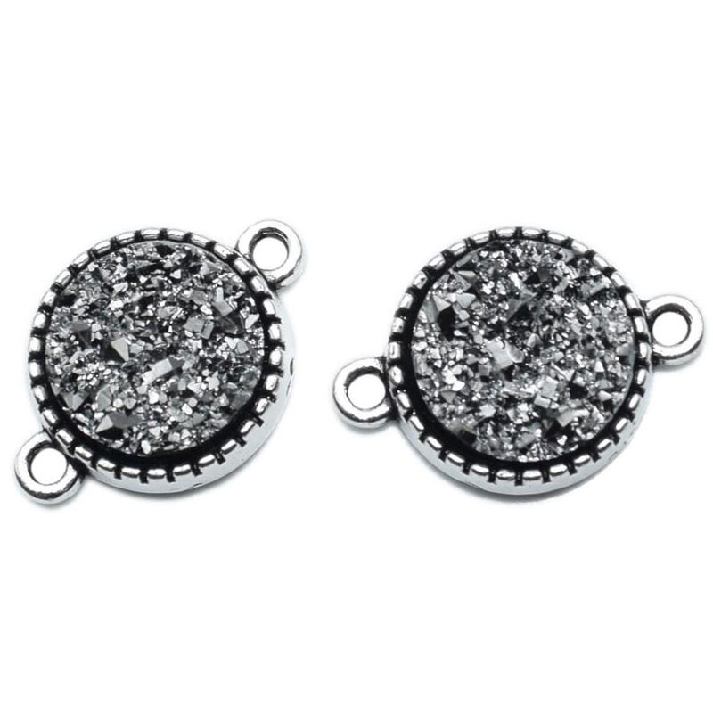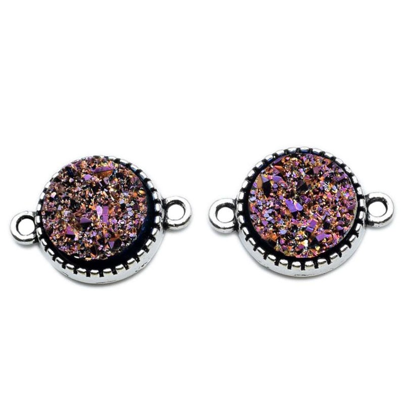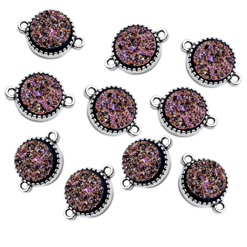 Bead, Purple Metallic druzy connector, Cirle, tibetan silver bezel , handmade jewelry, Antique Silver Pewter quantity