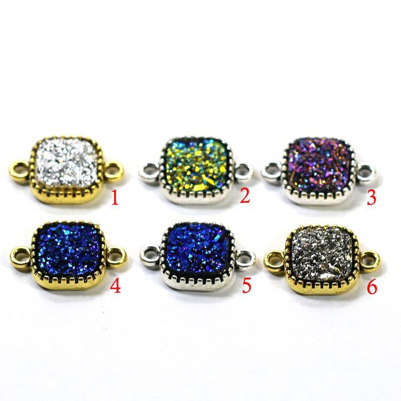 • Bead Synthetic Square Druzy Pewter Bezel Connector (12mmx12mm)