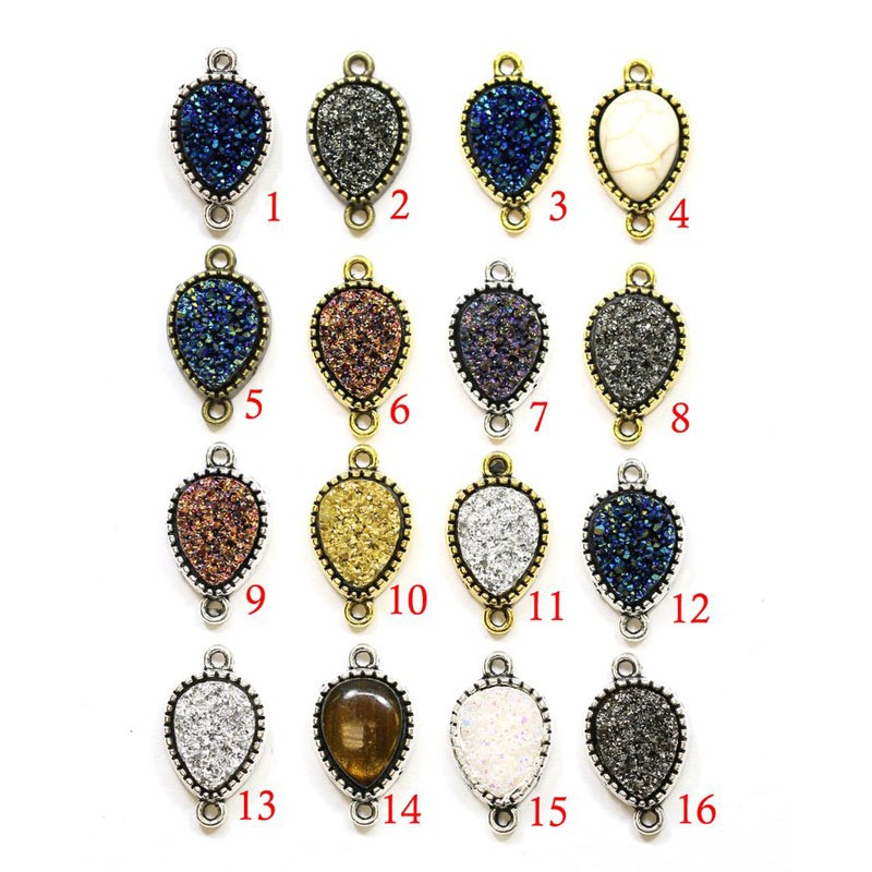 • Bead Synthetic Teardrop Druzy Pewter Bezel Connector (16mmx13mm)
