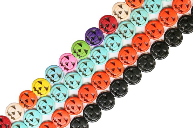 • Halloween Magnesite Pumpkin Bead Strand (16 Inches Long)(15mm & 25mm)