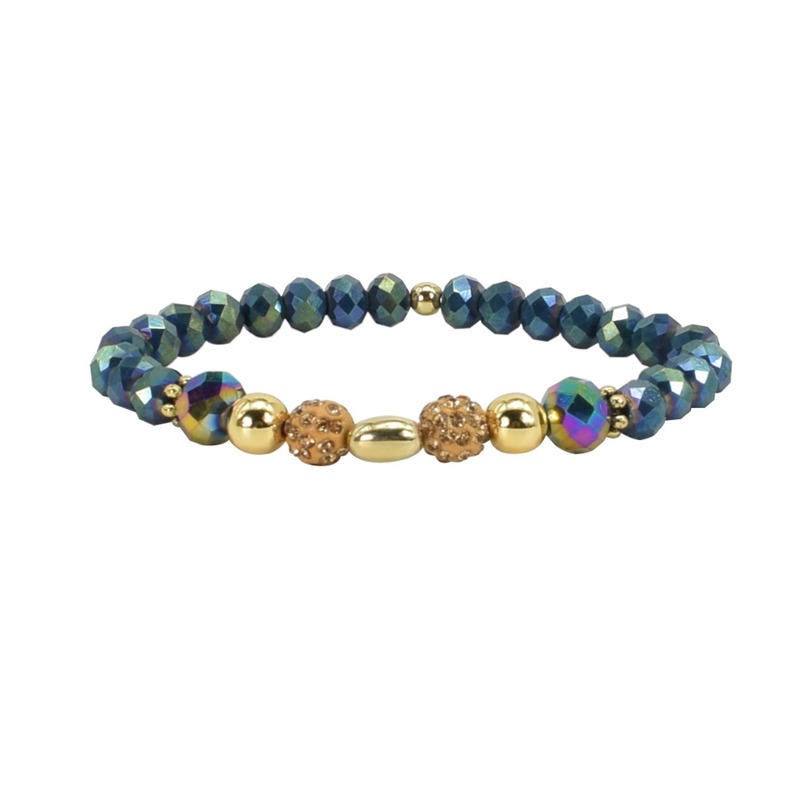 Handmade 8x6mm Dark Green/Blue Faceted Crystal Rondelle with Gold Spacers and Round Pave Rhinestone Bracelet (7.5 Inches) quantity