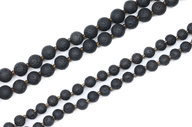 Handmade Double Knotted Lava Rock Long Necklaces / Pre-knotted Necklace- Assorted Gemstones (36 inche and 52 inches long)