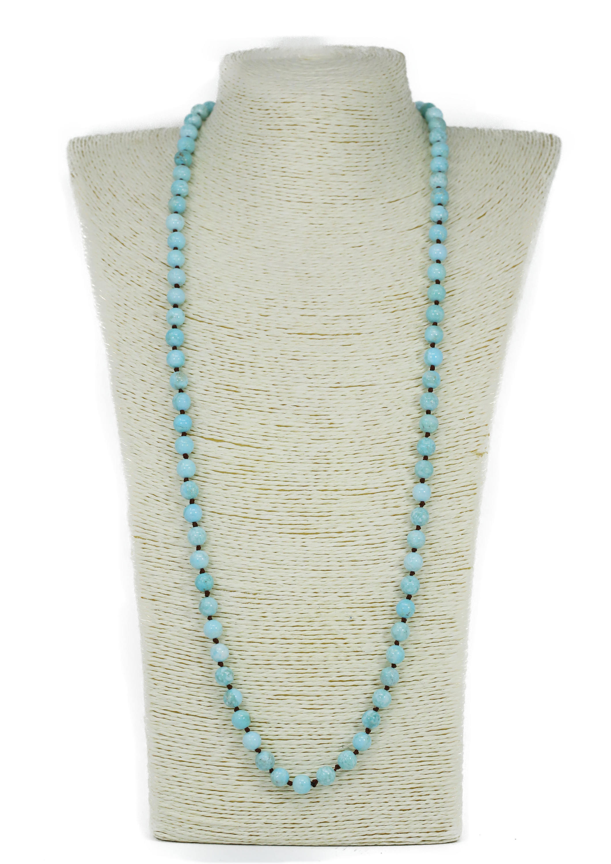 Handmade Double Knotted Light Blue Turquoise Long Necklace / Pre-knotted Necklace Stone (8mm, 36 Inches)