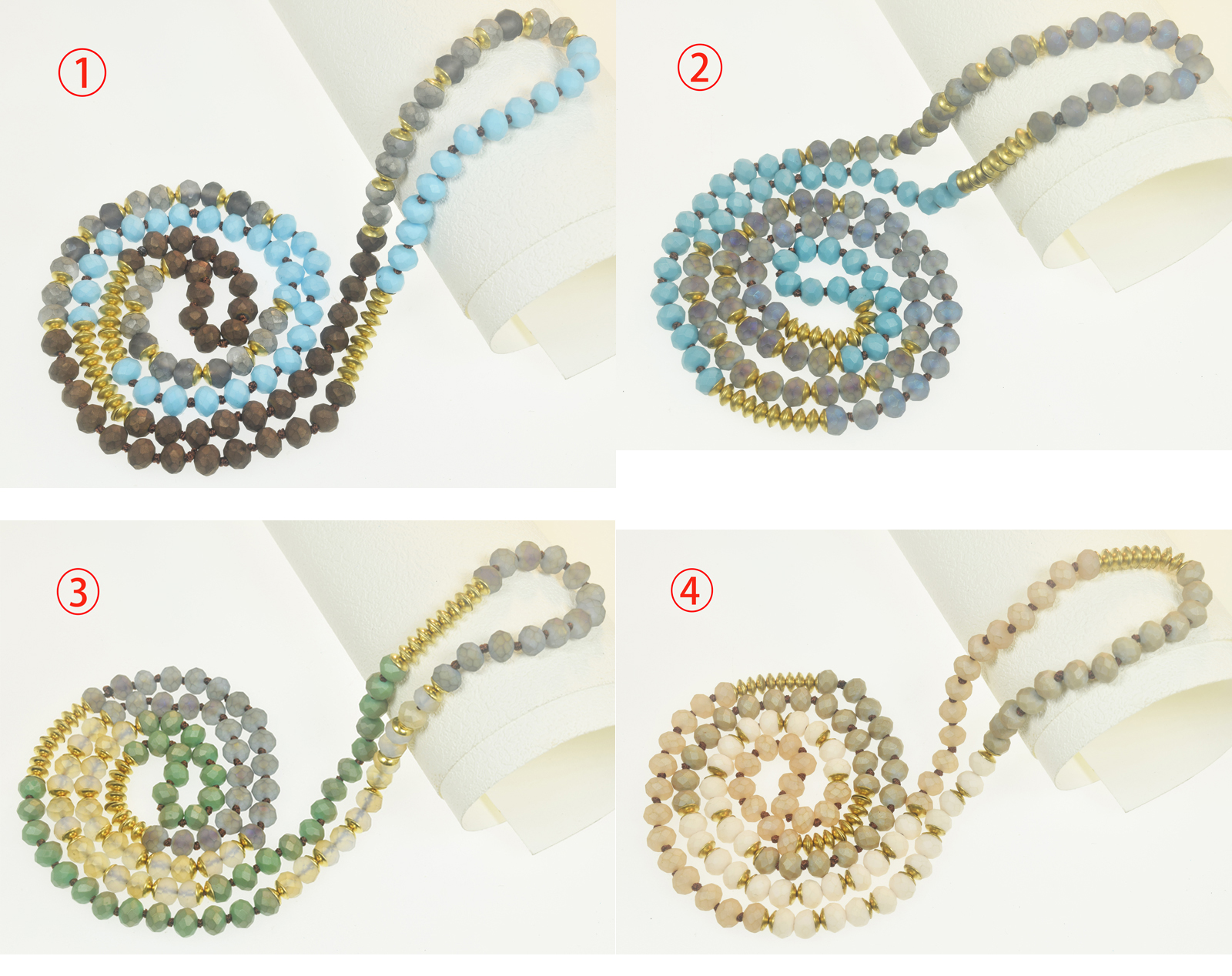 • Handmade Double Knotted Matte Crystal with Metal Beads Necklace 36 And 60 Inches Long