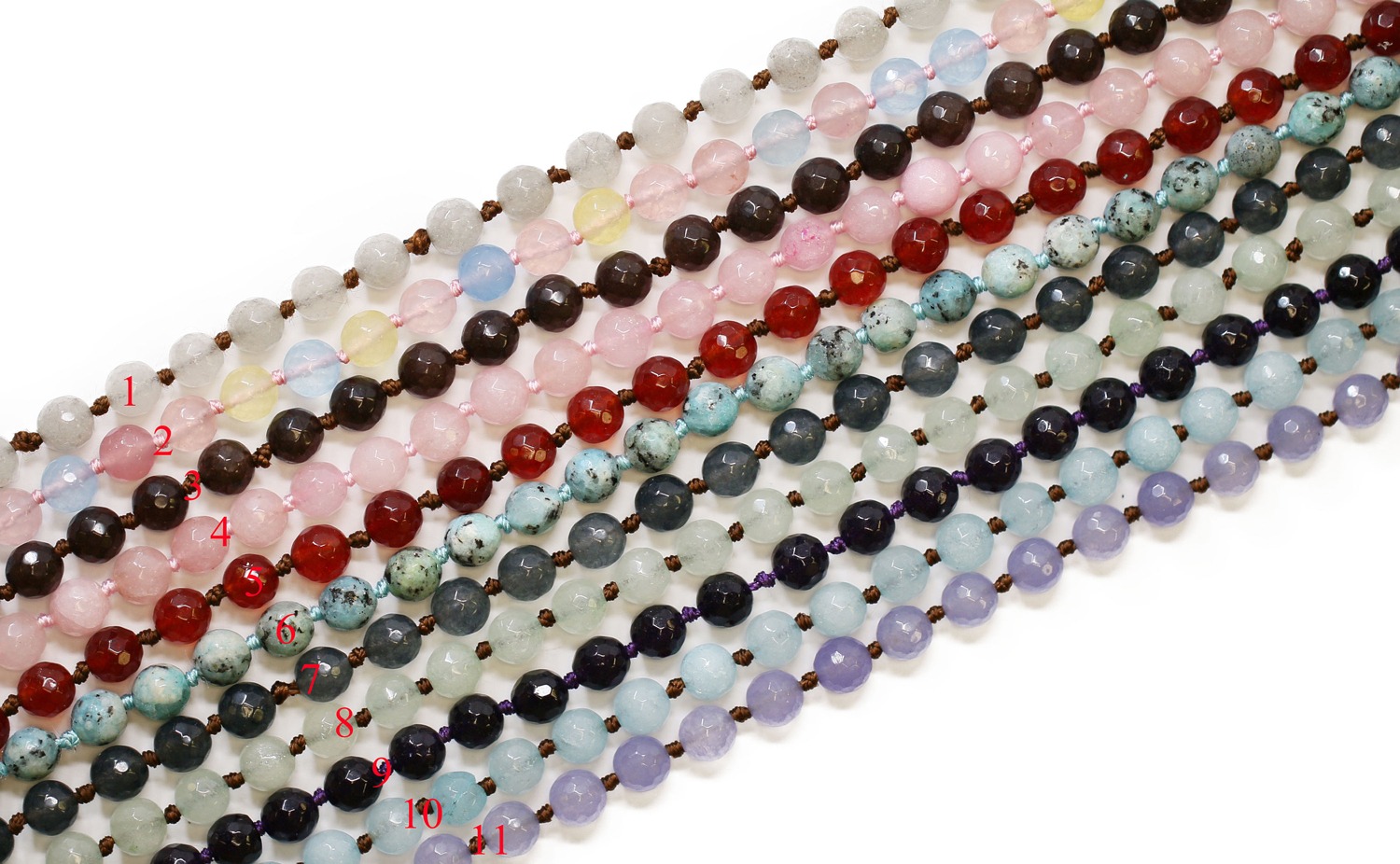 Handmade Faceted 8mm Double Knotted Gemstone (Jade) Necklaces 52 Inches Long / Pre-knotted Necklace- Assorted – Gemstones