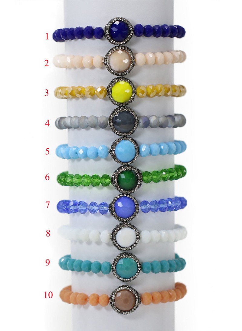 • Handmade Stretchy 8x6mm Crystal and a Round Pave Crystal Center Piece Bracelets (7.5 inches)