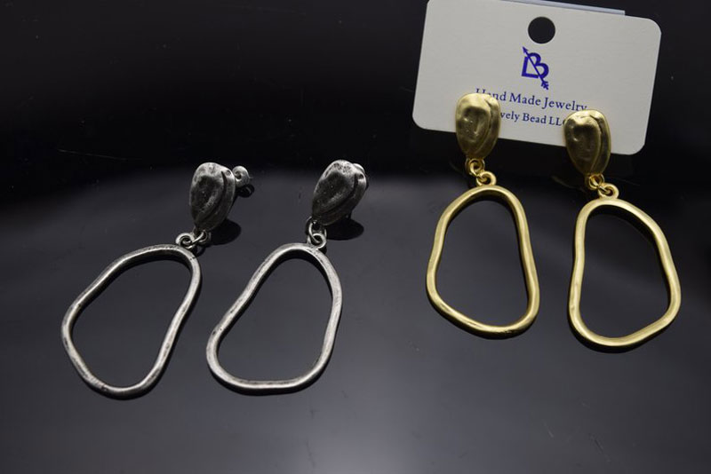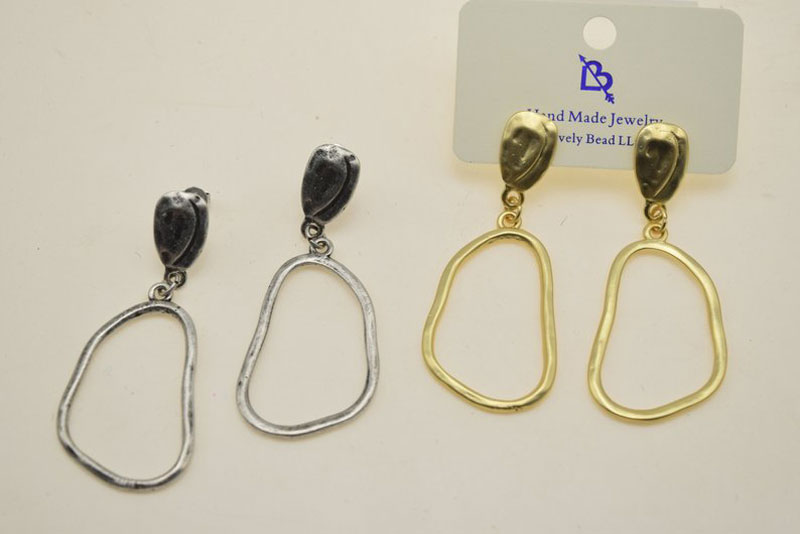 Bead Handmade Gold Hoop Earrings with Quartz Sticks (Pair)