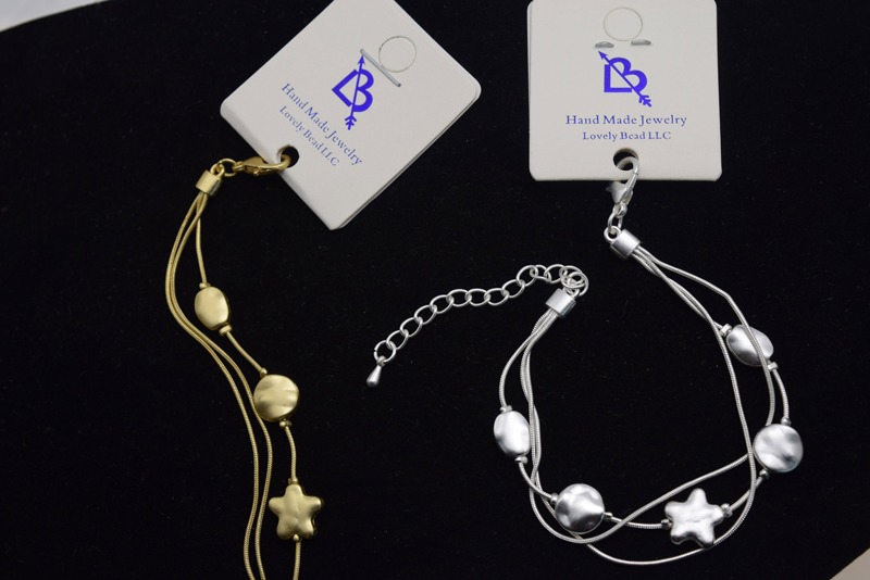 High Quality Handmade Matte Finish Smooth Coin and Star Bracelet (7 Inches Long +2 inch Bracelet Extension Chain) quantity