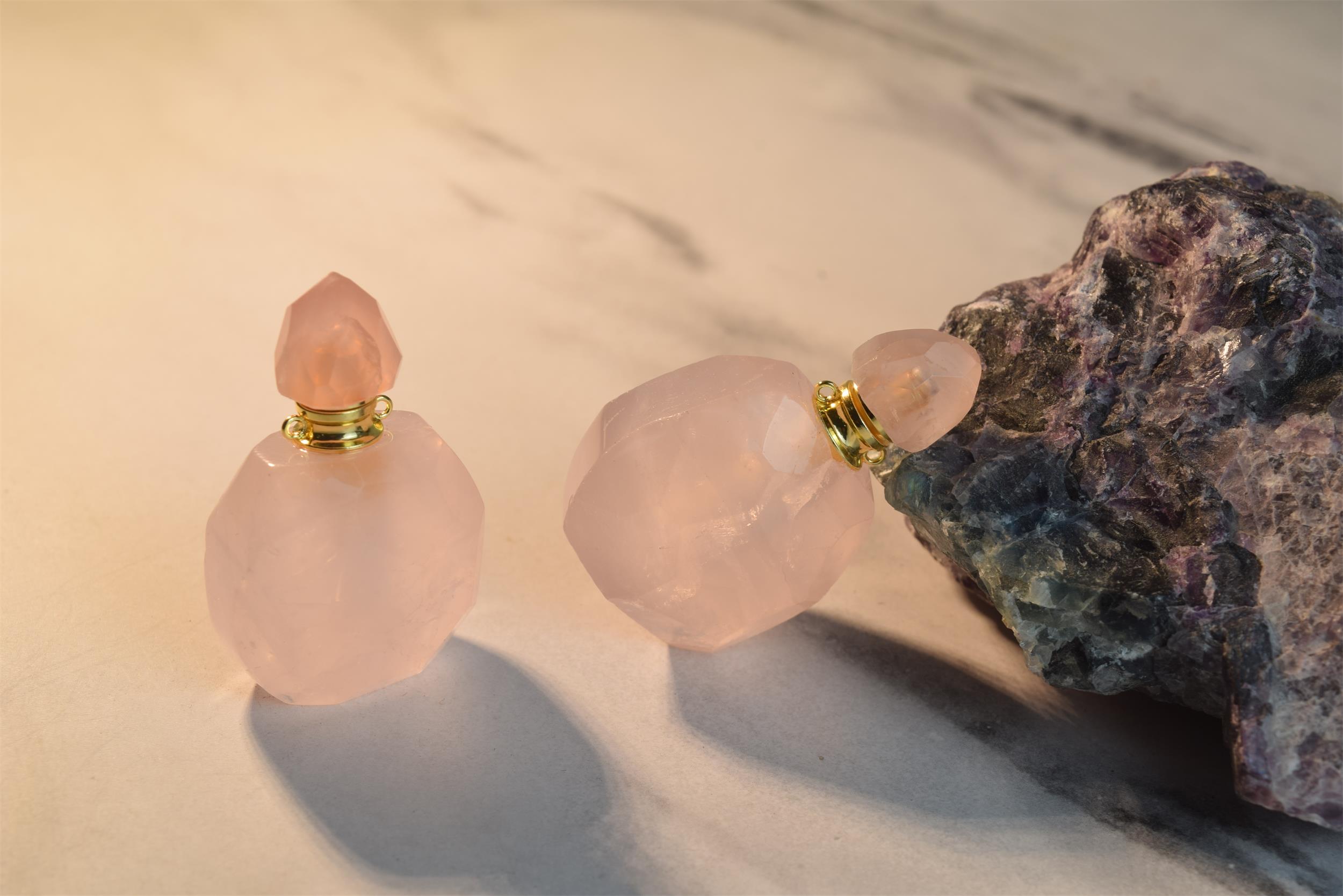 Large Flat Round Rose Quartz Perfume Bottle quantity