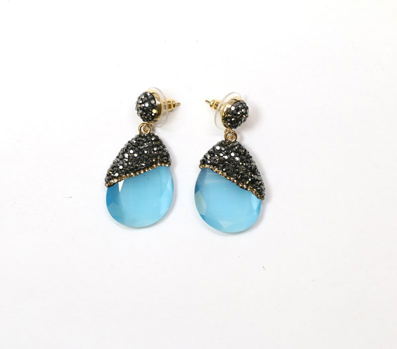 Light Blue Crystal with Pave Rhinestones Teardrop Pair (25mmx20mm)