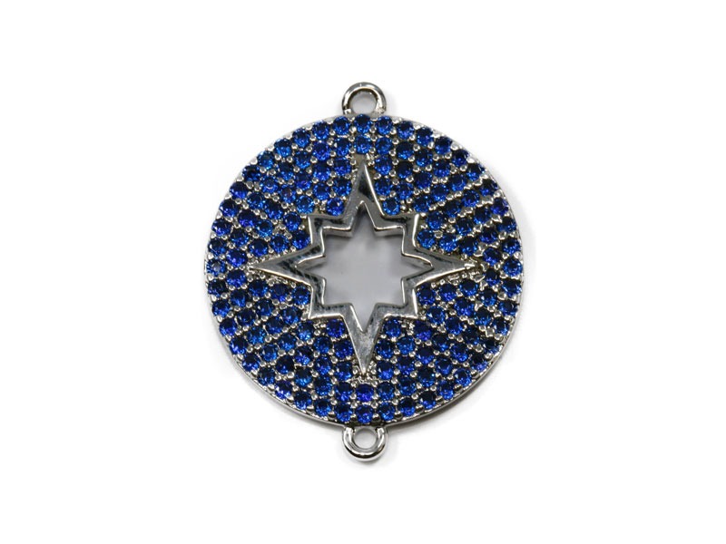 Lovely bead Silver Microfiber Pave CZ Cobalt Blue Coin With a Outlined Starbust Shape Connector (19 mm)