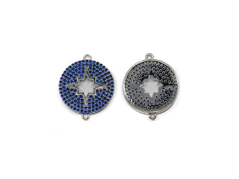 Lovely bead Silver Microfiber Pave CZ Cobalt Blue Coin With a Outlined Starbust Shape Connector (19 mm) quantity