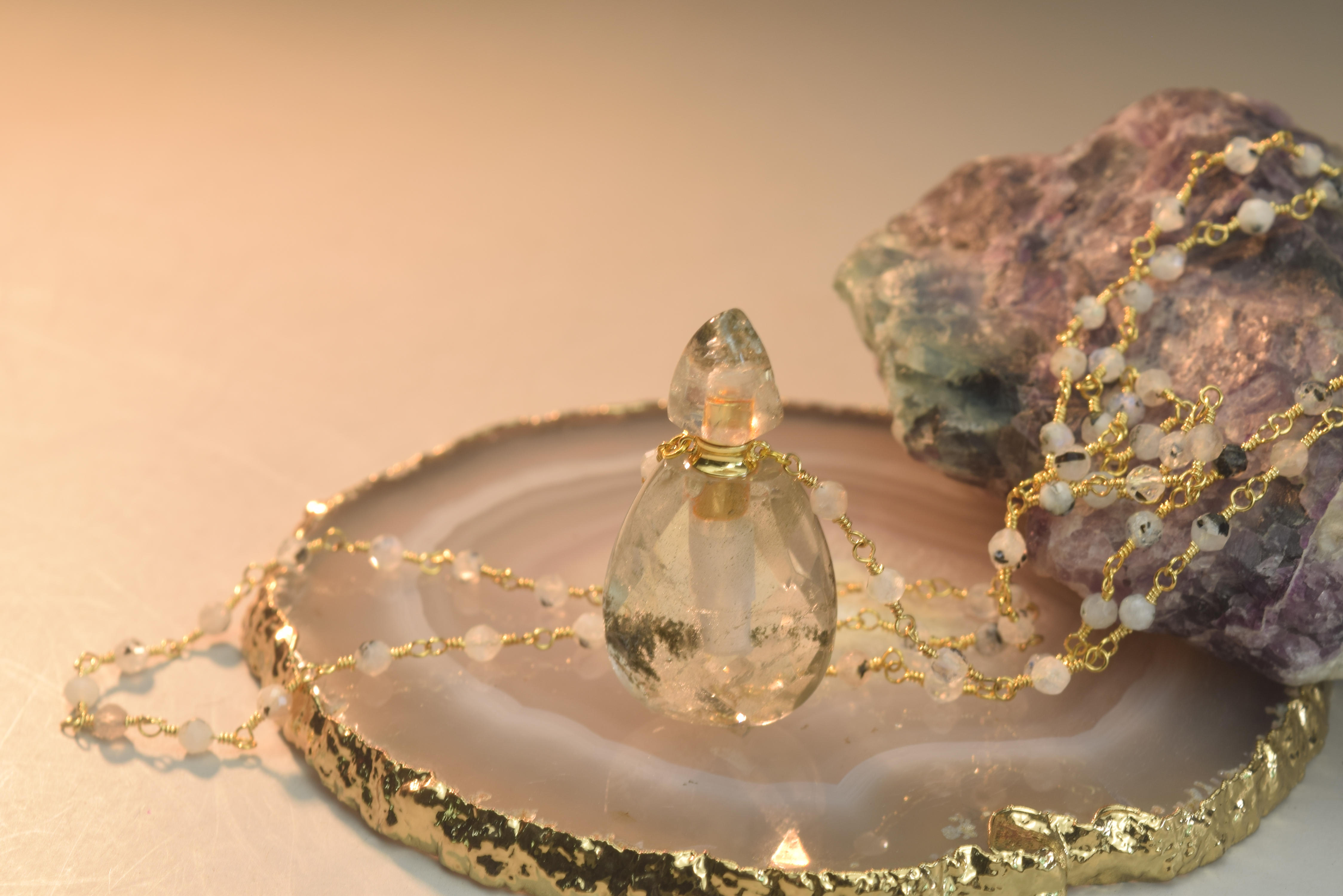 Natural Green Phantom Gemstone Essential Oil Bottle Pendant Necklace,Healing Jewelry,Essential Oil Diffuser Necklace