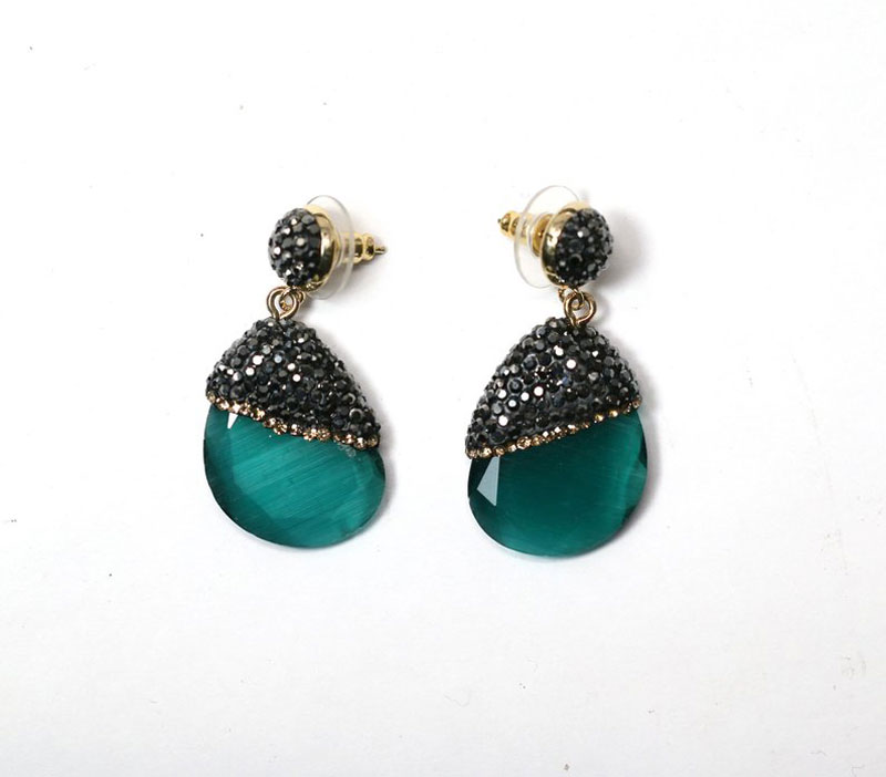 Teal Crystal with Pave Rhinestones Teardrop Pair (25mmx20mm)