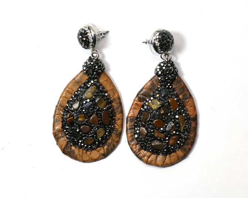 Tiger Eye with Pave Rhinestones Teardrop Earring Pair (45mmx30mm)