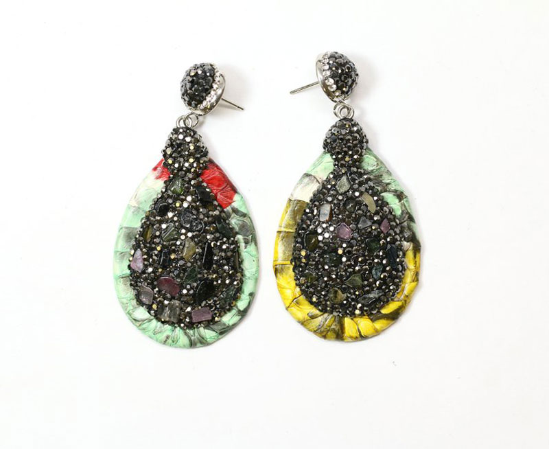 Tourmaline with Pave Rhinestones Teardrop Earring Pair (45mmx30mm) quantity