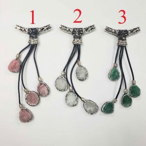 • Handmade Tibetan Pewter with Druzy and Leather Tassels Pendant (5.5 Inches Long)