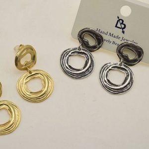High Quality Handmade Matte Finish Corrugated Square and Circle Dangling Earring Pair