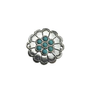 • 25mm Howlite Turquoise with Lead Free Pewter Flower Charm(B82436)