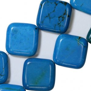 • 36mm High Quality Smooth Blue Turquoise Square Bead Strand (15.5 Inches Long)